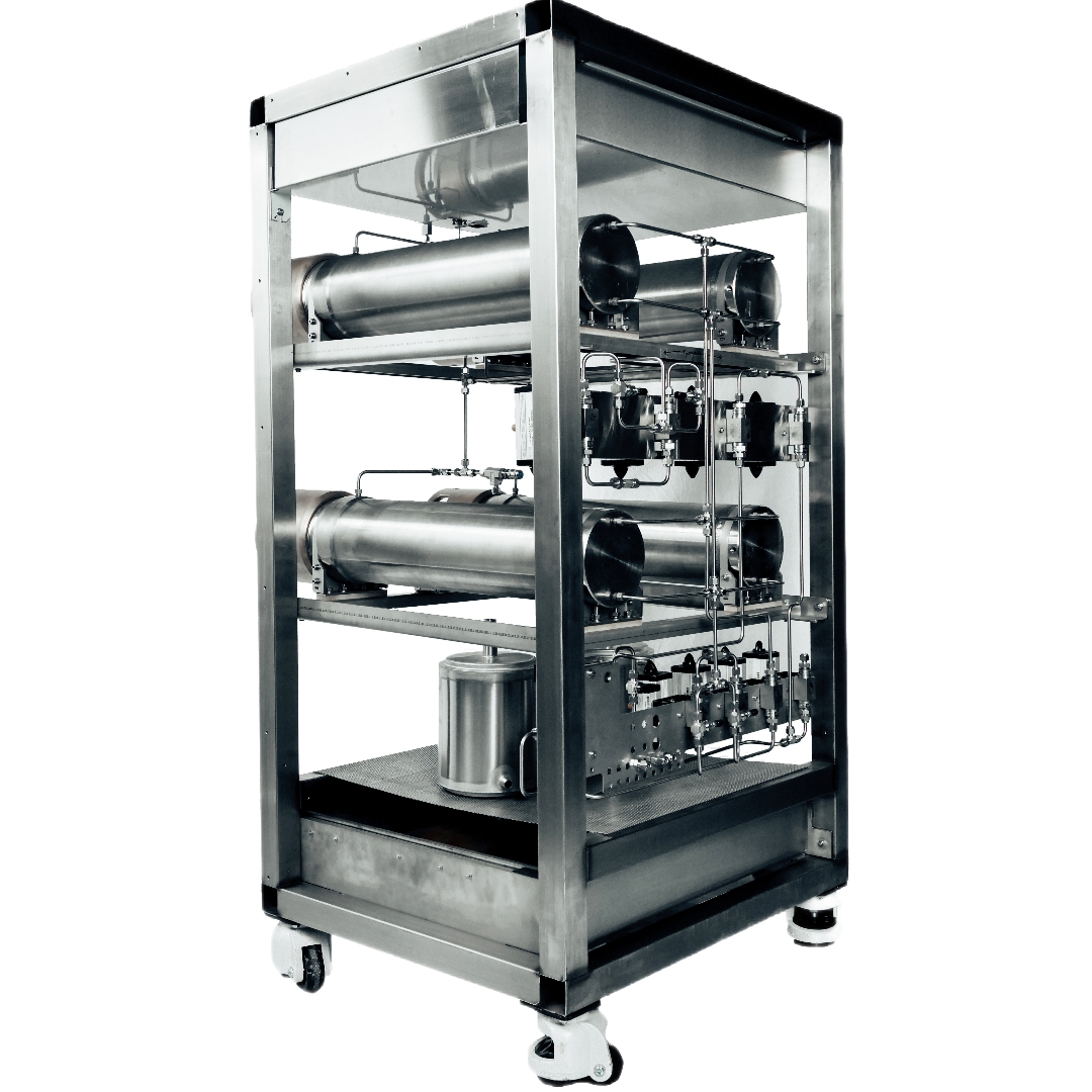 The SKIF-SOK-CO2/TOLUENE automated core cleaning system for removing formation fluids is designed to clean the pore space of core samples with diameters from 30 to 110 mm from formation fluids and technological liquids using pressurized toluene with dissolved carbon dioxide in an automated mode controlled by specialized software. When the pressure in the saturation chamber decreases, the carbon dioxide is released from the toluene and, expanding, displaces the contaminated solvent from the pore space of the samples. Extraction efficiency is achieved by repeatedly cycling through “saturation-degassing” until the solvent stops changing color. Extraction can be performed for both full-size core fragments and core samples of various sizes and shapes.