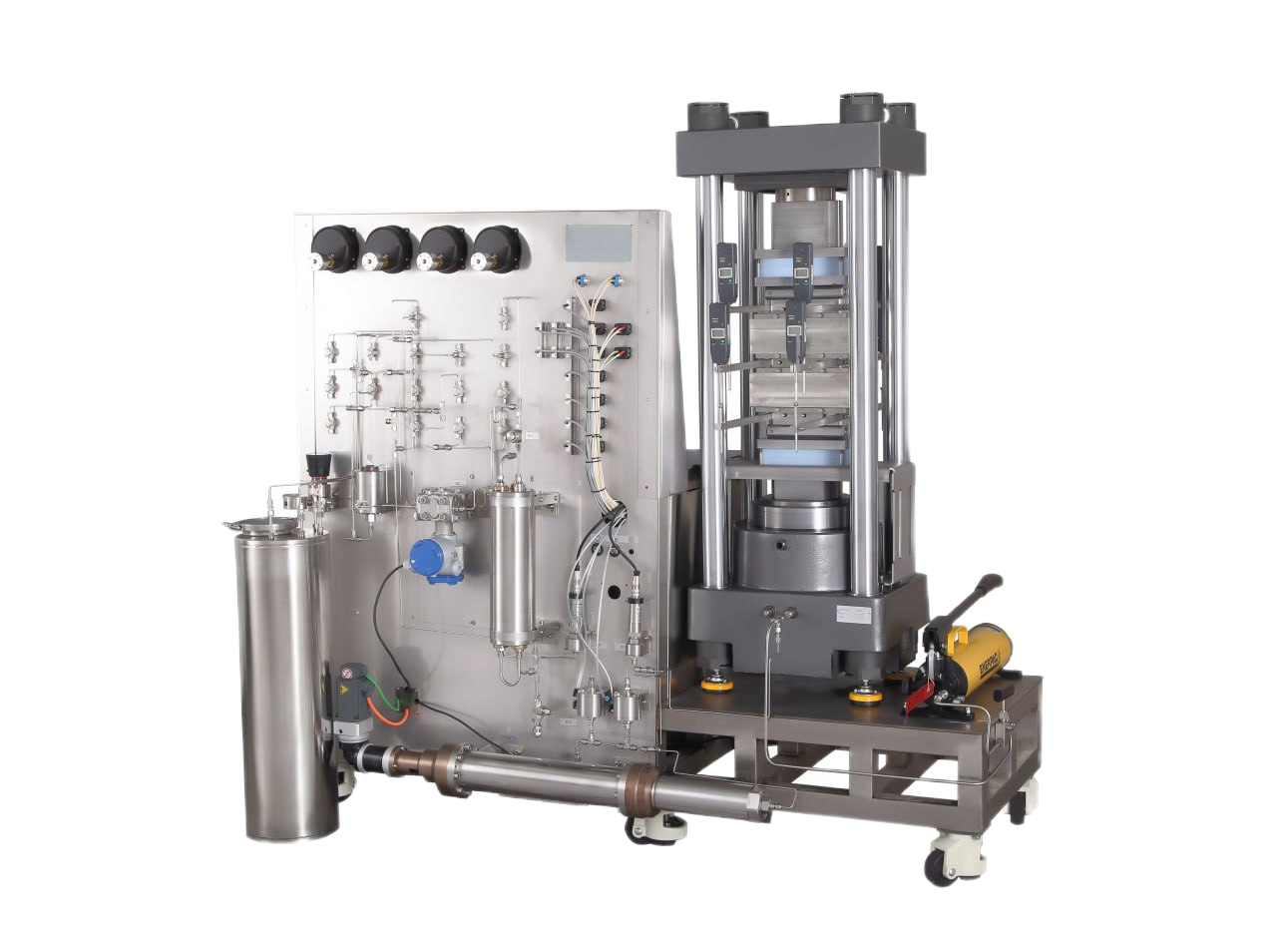 The equipment allows for evaluating the long-term and residual conductivity of packs of all types of propping agents (ceramic proppants and quartz sands), performing continuous measurements during the experiment of the pack’s compression forces, its height, and fluid permeability at pore pressures up to 10 MPa (1450 psi) and compression pressures up to 138 MPa (20,000 psi).